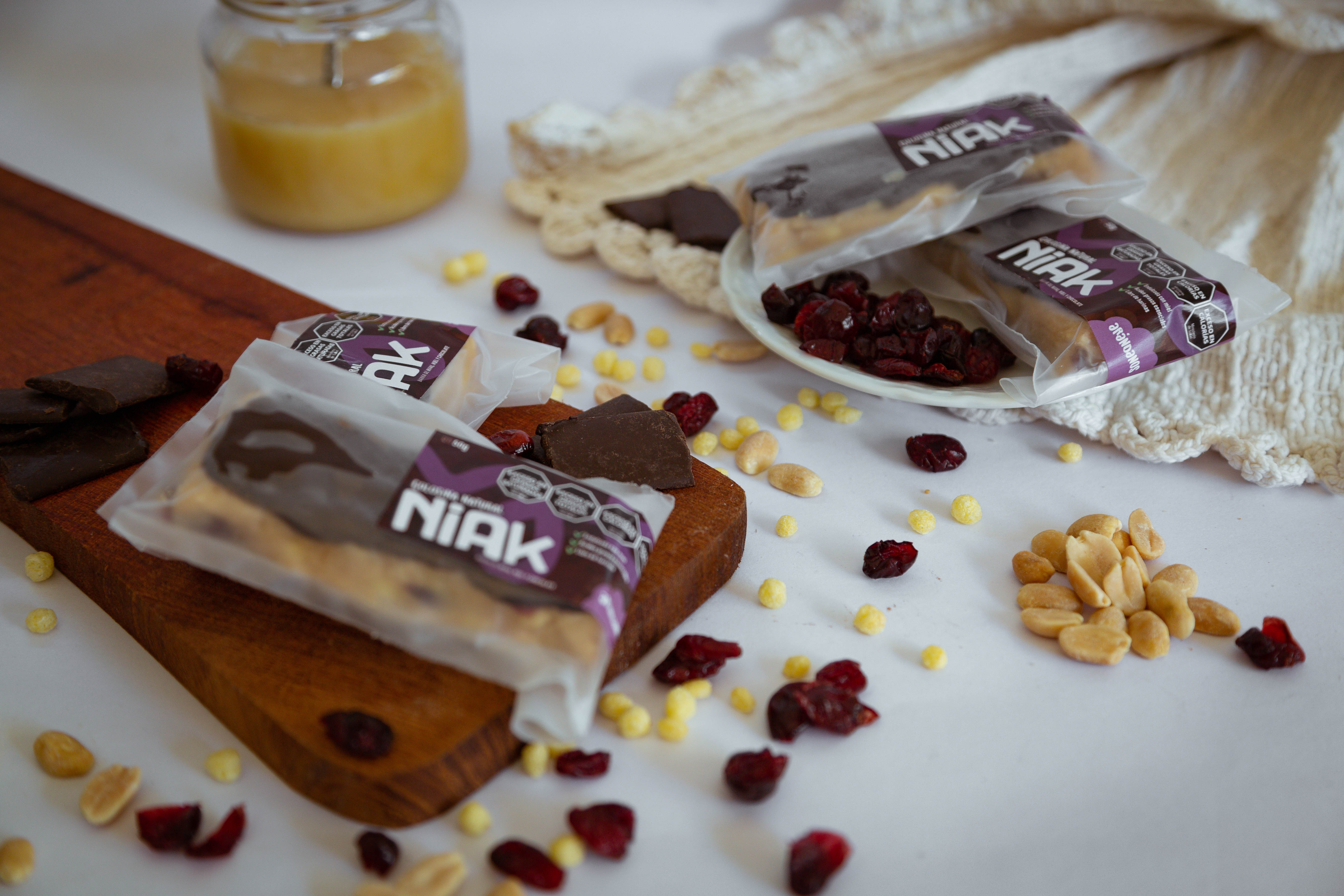 Fábrica artesanal producimos cientos de barritas por día . Lo que caracteriza a Niak es que es algo diferente en el mercado, entre una barrita y un chocolate, el gustito ideal que sacia, nutre y alimenta.